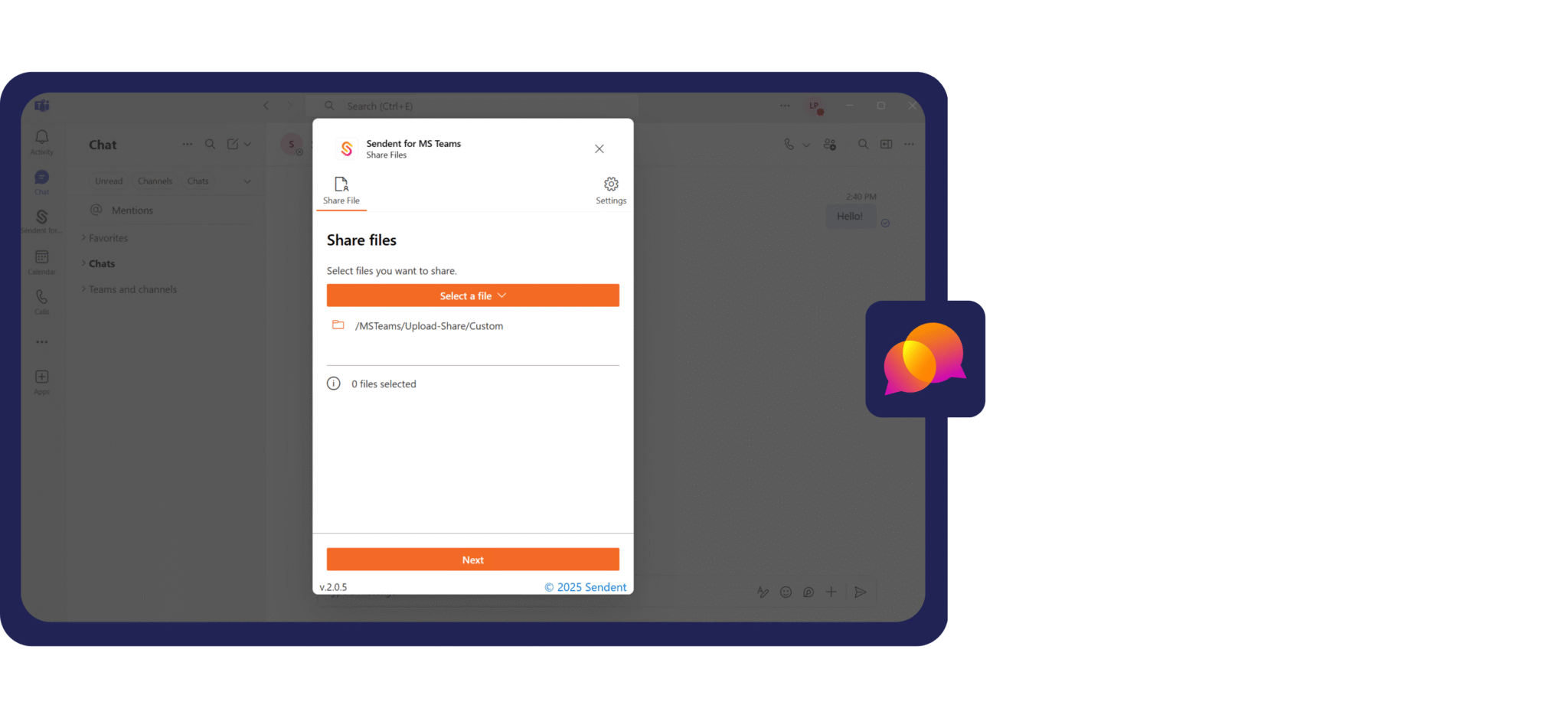 Say goodbye to juggling multiple tools. Sendent seamlessly connects your private server to Microsoft Teams, enabling secure file sharing and enhanced communication.