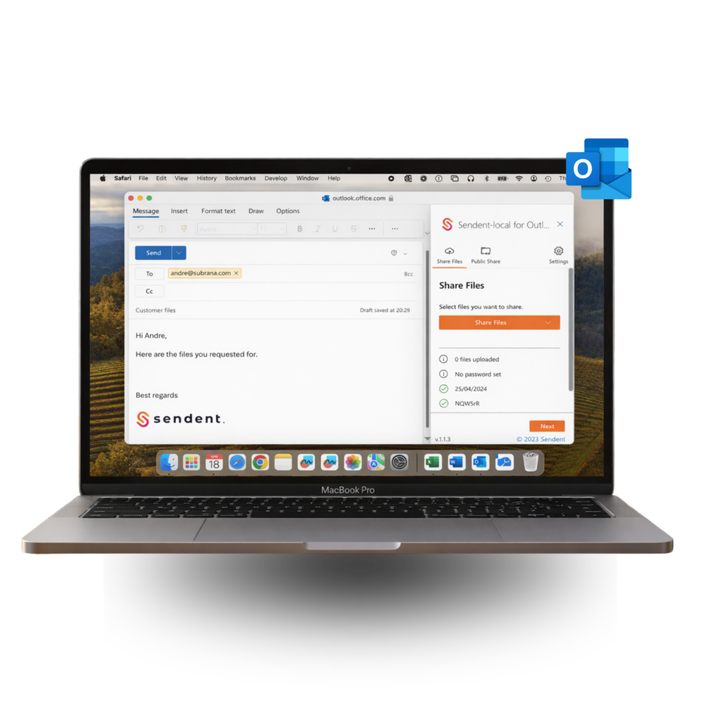 Sendent for Outlook is an add-in that enhances your Outlook application with secure email and file-sharing capabilities. It seamlessly integrates with Nextcloud to enhance data security, allowing you to share files quickly without leaving your trusted Outlook application.